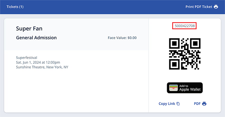 Fan Festival 2026 in Anaheim Ticket Number (Refer to this Showclix help article to locate your ticket number. The ticket number is located above the QR code when selecting "View Tickets.")