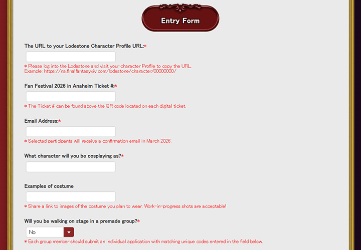 90 walk slots will be confirmed before the event. Selected participants will receive a confirmation email from NAFanFest26-cosplay@us.square-enix.com to the email they apply with in late March 2026.