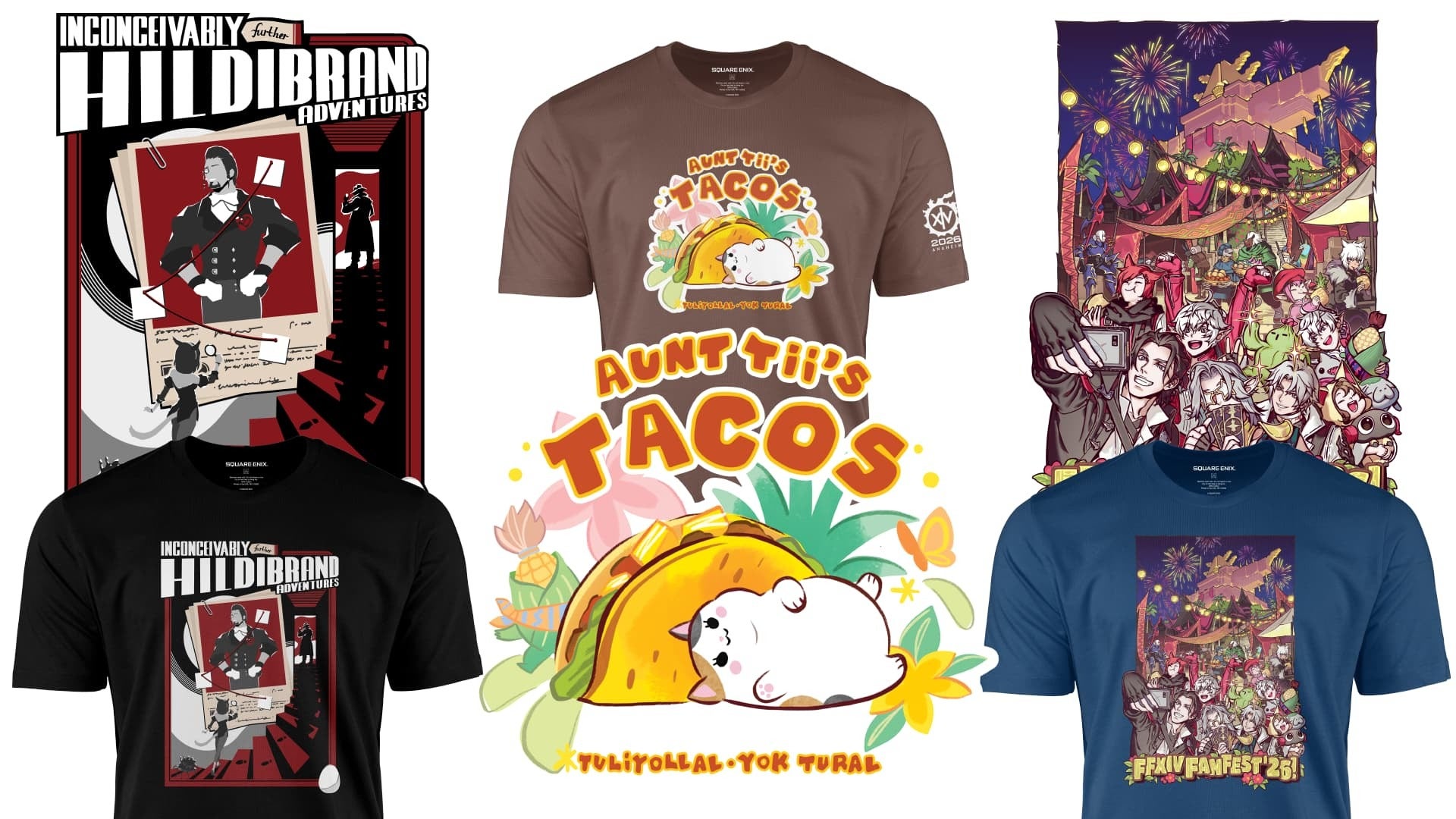 Check out an assortment of new graphic tees and hoodies featuring designs celebrating the world of FFXIV! We also have a range of themed merchandise for Aunt Tii's Tacos, your favorite taco spot in Tuliyollal! Outside of Fan Festival-themed items, we also have a wide variety of all-new merchandise, including mini backpacks, pouches, key chains, jigsaw puzzles, plushies, and more!